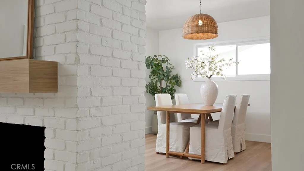 579 N Century Dr, Anaheim A Reimagined Mid-Century Masterpiece Arrive in style through a private gated driveway poured in crisp, new concrete, framed by lush, manicured landscaping that sets the tone for the luxury within. A bold new front door with sleek matte black hardware, a smart video doorbell, and a sculptural designer light fixture welcome you home. Step across the threshold onto wide-plank white oak luxury vinyl flooring that flows seamlessly beneath LED recessed lighting and fresh designer paint. Every detail is elevated: tall new baseboards, refined door casings, and modern matte black hardware throughout. The heart of the home unfolds in an open-concept living space anchored by a striking double-sided wood-burning fireplace (with gas hookups for instant ambiance). Oversized dual-pane windows and new sliding glass doors flood the room with California sunlight, drawing your eye to the sun-drenched sunroom an entertainers dream with panoramic garden views and effortless indoor-outdoor flow. The chefs kitchen is a study in elevated design: rich oak panel cabinetry, gleaming quartz countertops and full-height backsplash, a deep quartz farmhouse sink, and custom floating shelves. Top-tier appliances include a luxury gas range, paneled dishwasher, built-in microwave, and sleek range hood all centered beneath a statement chandelier in the adjacent dining area. Retreat to the spacious primary suite, where a spa-inspired en-suite awaits: designer porcelain tile shower, high-end fixtures, and soft-glow lighting that transform routine into ritual. Two generously sized gu